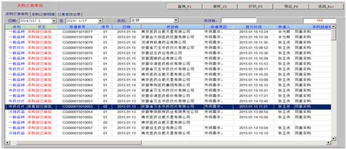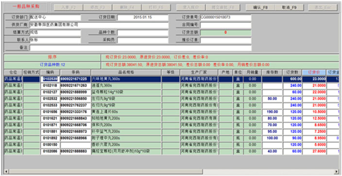 首营企业、首营品种、 自动补货、手工订货、采购单审核、 订货单查询、订货记录查询、 中药产地、生产厂家、 供货商管理 |