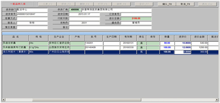 一、进货业务 1、进货验收入库 2、进货单查询 3、进货记录查询 二、退货业务 1、退货单审核 2、退货单查询 3、退货记录查询 |