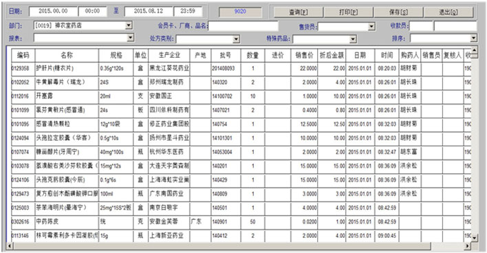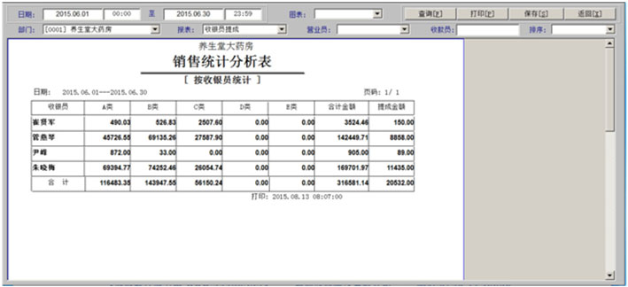 当日销售动态、销售数据汇总、 销售收入日报、销售业绩统计、销售提成比例、 药品销售单据、药品销售记录、销售收款记录、 |